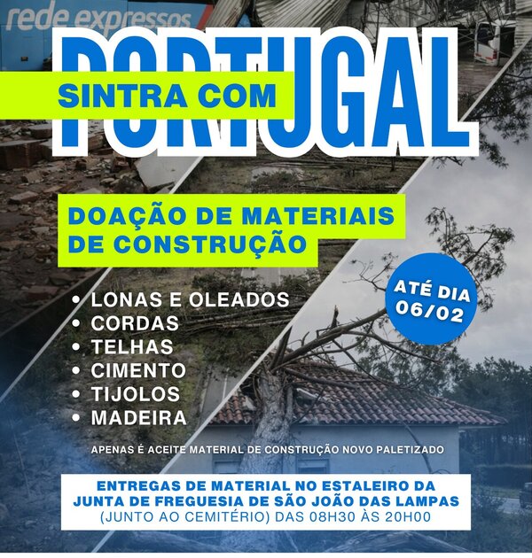 A Câmara Municipal de Sintra lançou o movimento solidário “Sintra com Portugal”, com o objetivo de apoiar a recuperação das zonas afetadas pelo mau tempo.