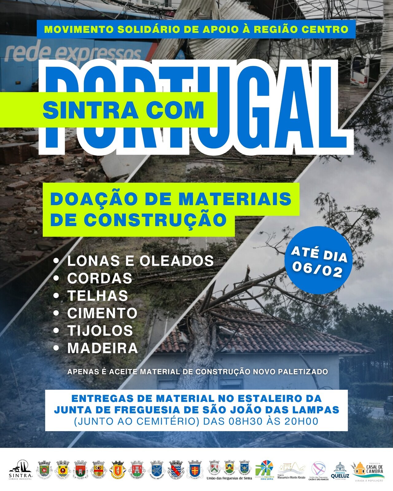 A Câmara Municipal de Sintra lançou o movimento solidário “Sintra com Portugal”, com o objetivo de apoiar a recuperação das zonas da Região Centro afetadas pelo recente mau tempo, que causou danos significativos em habitações e infraestruturas.